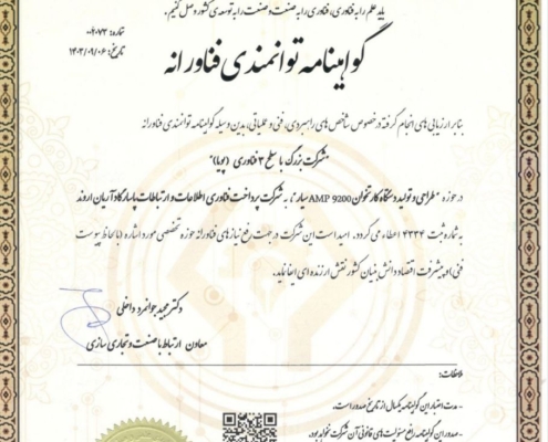 شایان ذکر است این شرکت پس از تلاش های مستمر و پیگیری های دقیق در راستای ارتقای کیفیت و توسعه پایدار خود، در آذر ماه سال ۱۴۰۳ موفق به اخذ گواهینامه توانمندی فناورانه در حوزه طراحی و تولید دستگاه کارتخوان AMP9200 سیار از سوی وزارت علوم، تحقیقات و فناوری شده است. این گواهینامه که نشانه قابلیت های فنی و توانمندی های علمی فناپ تک در زمینه تولید دستگاه های کارتخوان است، گام مهمی در راستای ارتقای استانداردهای تولید داخل کشور نیز به شمار می آید.